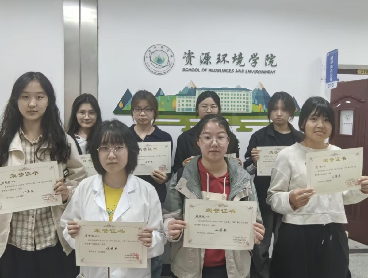 从绘画到书法,从创意设计到文学创作,参赛学生投入了大量热情,悉心打磨自己的作品。经过了数小时的认真评选,评委们确定了各个奖项的归属。绘画组中,刘轩昊的作品以其独特的视角和精湛的技艺脱颖而出,荣获比赛一等奖。地理科学专业2023级(2)班的张梓敏和环境科学与工程类专业2024级(3)班刘旻荟等同学的作品也表现不俗,他们以各自独特的风格和创意,获得了二等奖的荣誉。在其他组别中,地理科学专业2023级(3)班程序、地理科学专业2023级(1)班钱烁、环境工程专业2023级(3)班谢悦悦等同学也凭借他们的才华和努力,荣获了三等奖。