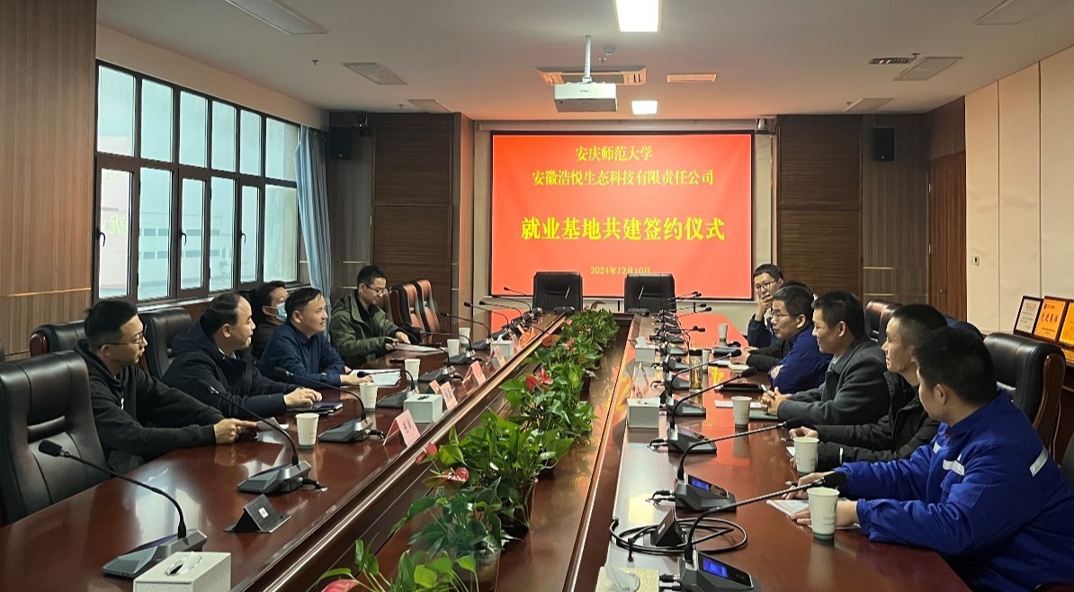 夏斐代表学院,从师资力量、科研平台、专业建设等方面进行了详细介绍,并希望双方发挥比较优势,强强合作,在资源共享、科学研究、人才联合培养、毕业生实习就业等领域开展全方位合作。同时,勉励学院毕业生、实习学生要谦虚务实,多多向老员工学习,要充分利用公司提供的资源和平台不断专研业务能力,提升综合素质,展现安庆师大学子的优良风貌,立足岗位为企业发展贡献自己的力量。夏斐还代表学院与企业签订了毕业生就业基地合作协议并进行授牌。