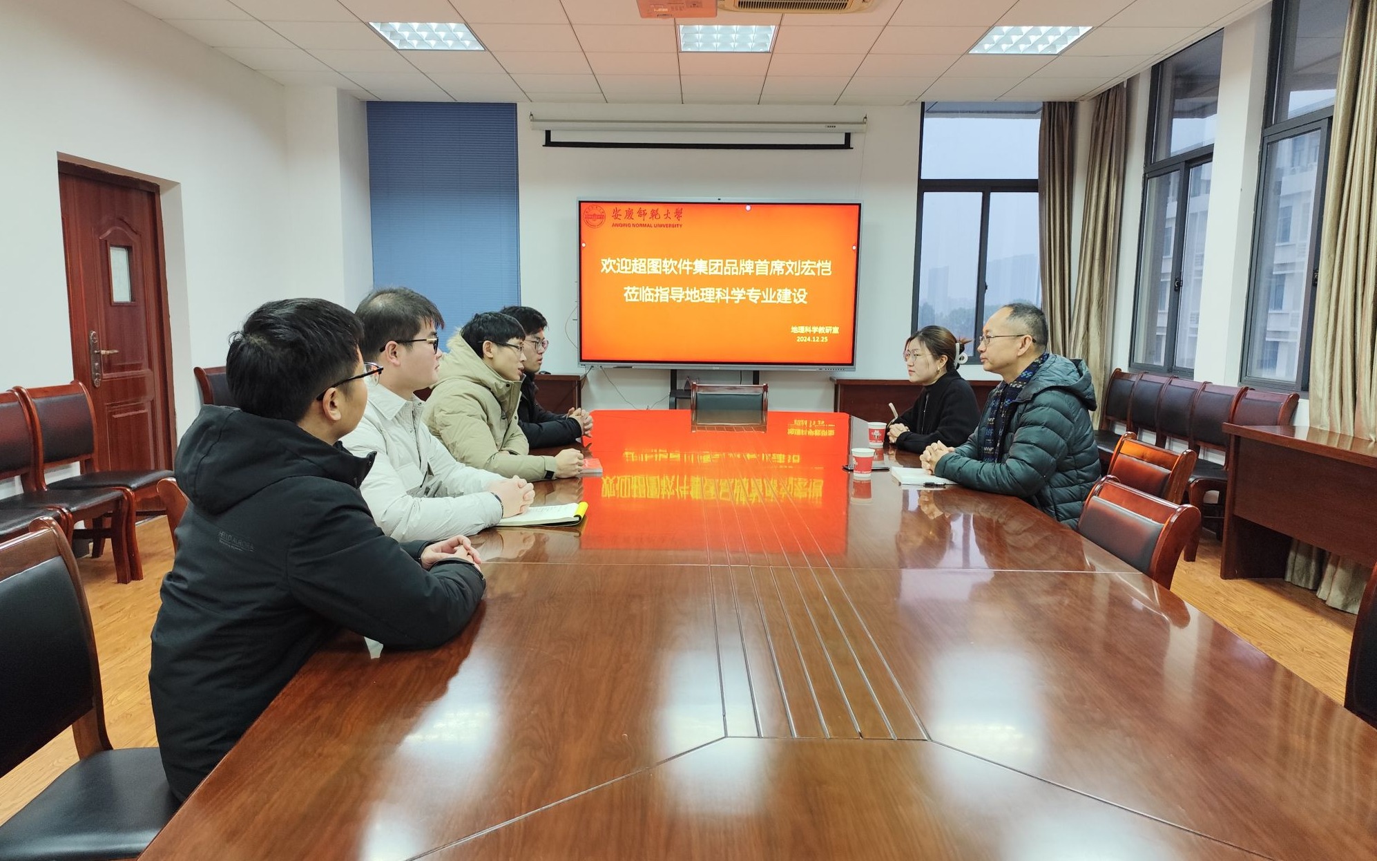 12月25日下午,超图软件品牌首席刘宏恺一行应英国上市公司365地理科学专业邀请,到访我院开展合作交流。学院副书记黄建平、副院长朱磊、地理科学专业教研室主任顾洪亮等出席交流会。