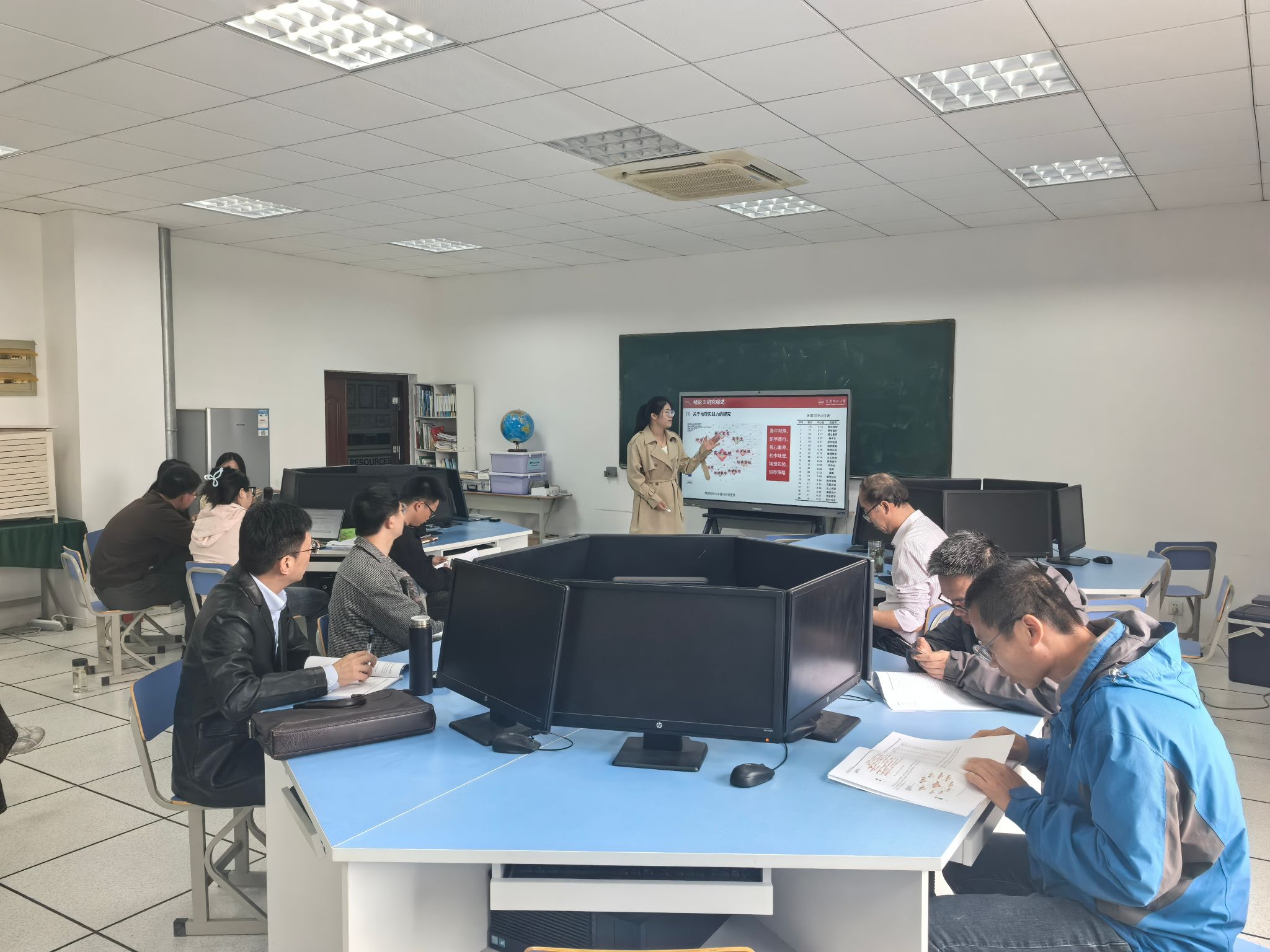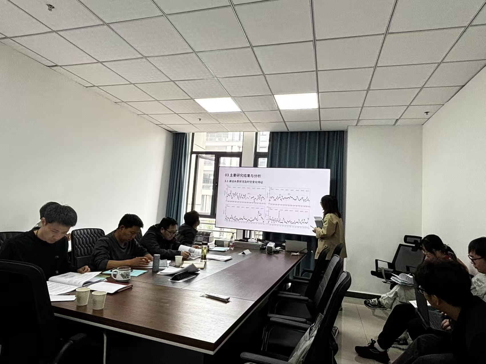 汇报环节中,同学们依次围绕各自论文的选题背景、研究思路、技术方法、核心发现及后续展望等内容进行了阐述。环境科学与工程方向的研究生分享了在环境化学、污染治理、生态修复等领域的最新进展;学科教学(地理)方向的研究生则重点展示了在地理课程设计、教学实践创新等方面的研究成果。