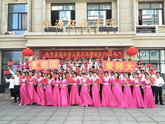 上午11点40分,随着上午最后一节课下课铃响,学院党委委员和全体上课的师生一起,齐聚学院教学楼前,身着盛装,手举国旗,深情并茂地齐唱爱国歌曲《我和我的祖国》,尽情抒发爱国情怀,礼赞在中国共产党领导下,祖国七十年来取得的伟大成就,坚定“不忘初心、牢记使命”的责任担当和教育强国的理想,坚定为中华民族伟大复兴而奋斗终生的决心,用自发的集体行动祝福伟大的祖国繁荣昌盛。