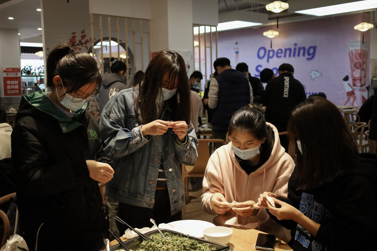 夹起饺子,蘸着醋,1班的赵馨悦尝了一个刚出锅的饺子后表示:“这是我吃过最好吃的饺子了,和同学在一起,吃什么都很好吃。”赵馨悦笑称,过年的时候,她会帮忙一起包饺子,她发现自己包饺子水平比班级很多学生都很高。
