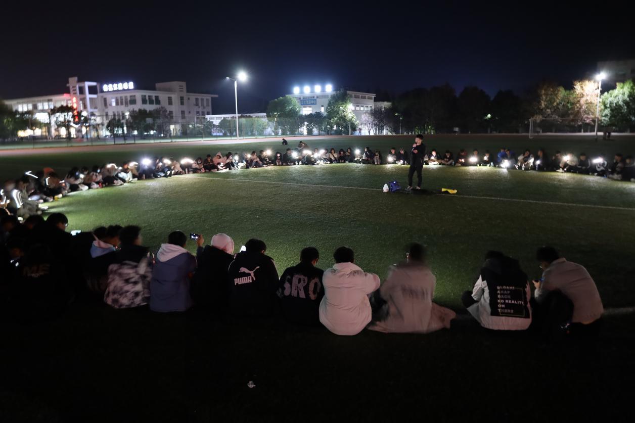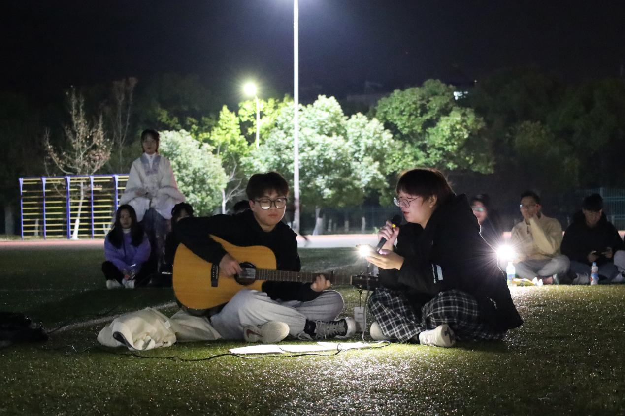在吃完饺子后,学生们收拾完场地后来到东门操场,进行歌舞表演。舞蹈串烧、吉他弹唱、大合唱《后来》……学生们的表演不仅赢得在场同学的阵阵掌声,还吸引了在操场散步的学生前来观看。