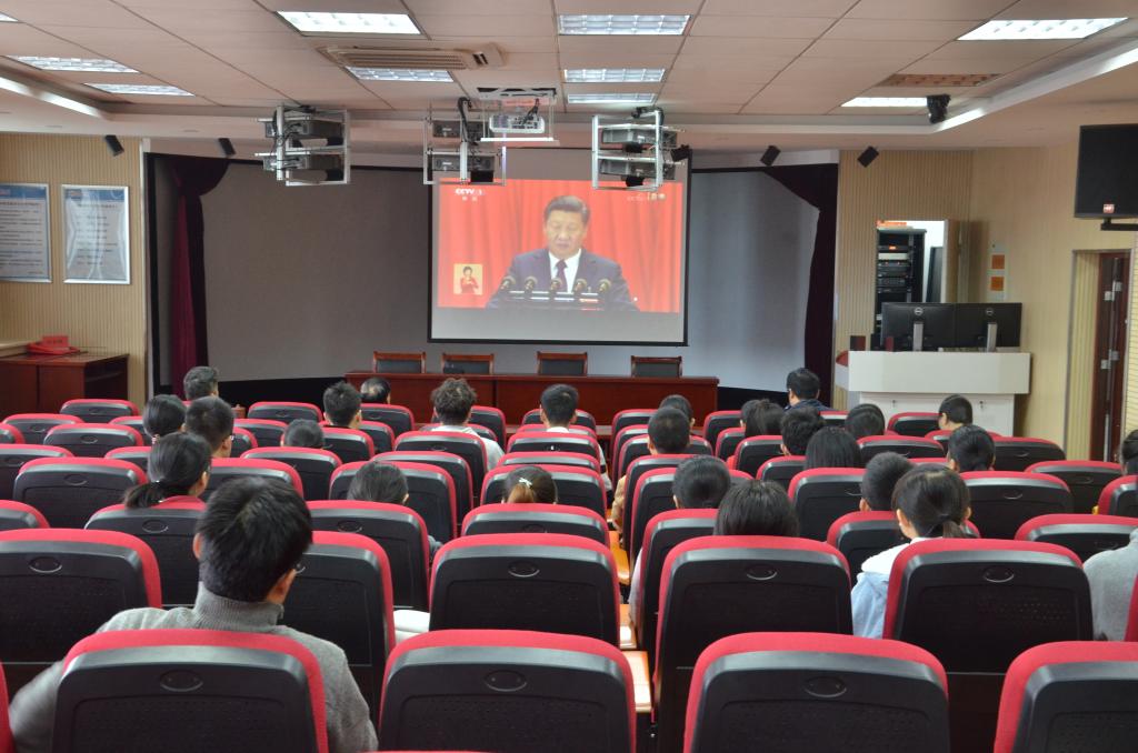 10月18日上午,中国共产党第十九次全国代表大会在北京隆重开幕。学院党政领导李经田、周葆华、徐志兵、王开友等党总支理论学习中心组成员、教师和学生党员以及部分入党积极分子在学院会议室和实验楼多功能厅等多个场所集中收看十九大开幕会,聆听习近平总书记向大会作的主题为“不忘初心,牢记使命,高举中国特色社会主义伟大旗帜,决胜全面建成小康社会,夺取新时代中国特色社会主义伟大胜利,为实现中华民族伟大复兴的中国梦不懈奋斗”的报告。