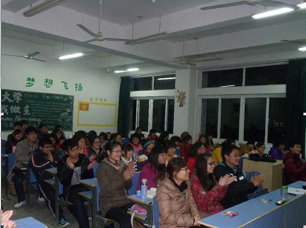 本次活动共分为四个环节。首先由主持人向同学们介绍十八大以后新一届的中央政治局常委,普及党的基本知识。之后,全班同学集体观看十八大报告的部分视频,学习了十八大的主题精神。视频结束后,主持人邀请了部分同学上台发言,大家结合自身的实际学习、生活和思想情况,谈了一些感受。大家纷纷表示要深入贯彻党的十八大精神,在工作中学习,在书本中学习,在实践中学习,将学习作为一种良好的生活习惯,在学习中不断提升自己的认知能力和认知范围,不断提高自己的综合文化素质和应对各种复杂情况的能力,并树立了未来的奋斗目标。最后,同学们还演唱了如《映山红》、《军港之夜》、《十送红军》等经典红歌,一起感受老一代革命家的革命气概。