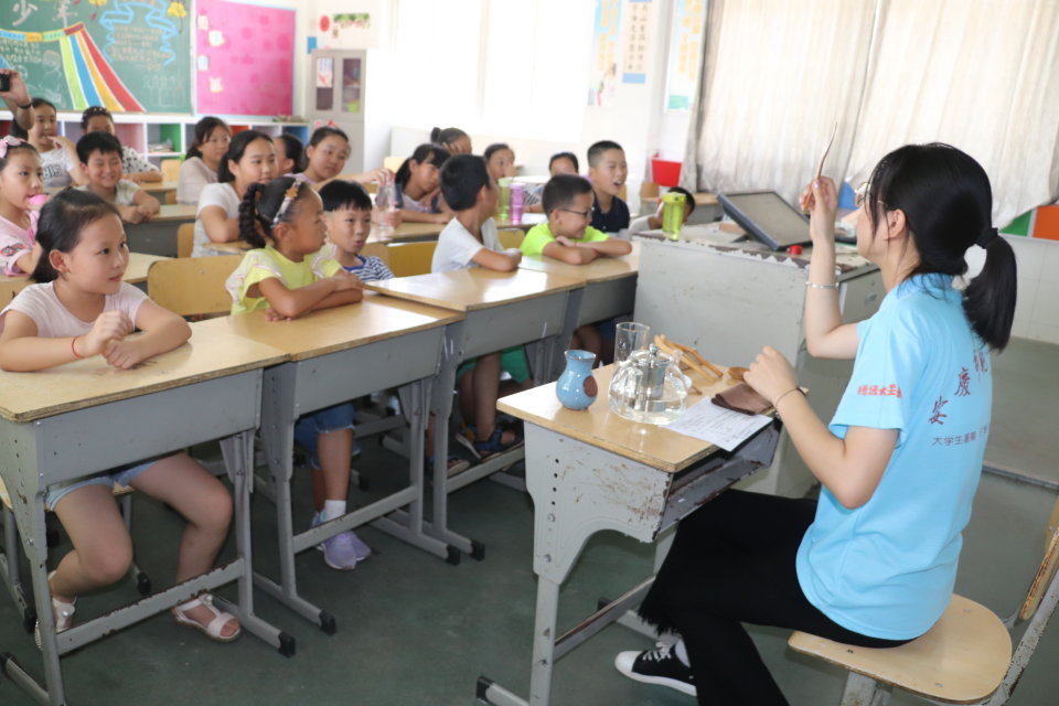 “小朋友们,你们了解茶艺的形成过程吗?”“你们想知道茶的分类吗?”“你们想知道如何品茶吗?”“想!”同学们嘹亮的声音从教室里传了出来 。为了让孩子们深入了解茶艺文化,志愿者老师给学生们详细介绍了有关茶的诗句、故事、分类以及功效。