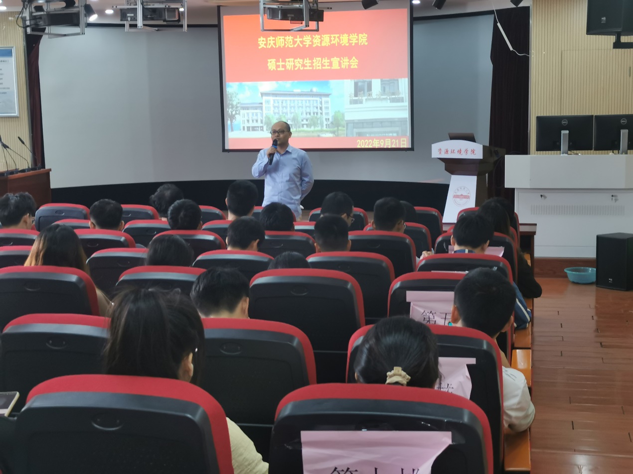 为扎实推进研究生招生宣传工作,进一步提升我院研究生生源质量,9月21日下午,学院在F411举办2023届本科生考研招生宣讲会,学院院长汪德进主持本次考研招生宣讲会,学院研究生秘书、部分辅导员老师、2019级环境科学、环境工程和地理科学专业同学参加了本次招生宣讲会。