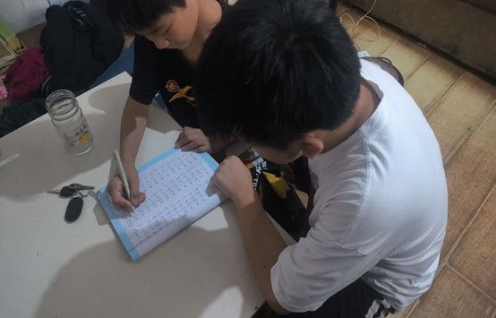 7月1日,实践团队正式开始暑期教育关爱实践,实践队员前往学生家里为学生辅导作业。来到第一位学生家里时,学生正在写作业,但是作业上却有空白,学生略显害羞的说道:“我有很多不会写的题目,也没有人能教我,所以只能空着。”于是,队长和队员们为学生仔细、耐心的讲解了学生不会的题目,直到学生明白、理解。