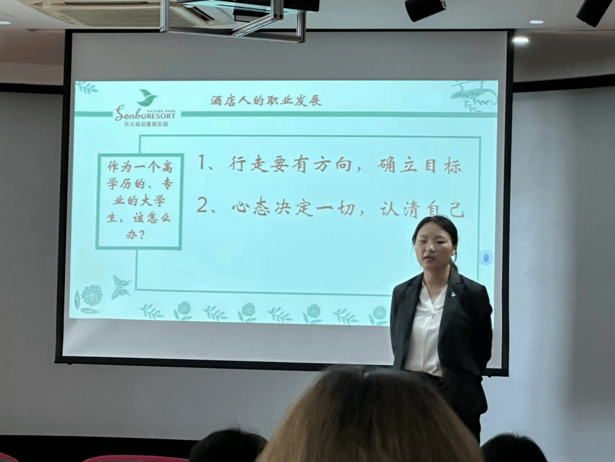 为进一步发挥优秀校友的示范引领作用,引导学生明确学业目标和职业方向,增强专业认同感,树立专业荣誉感。近日,受学院邀请,我院旅游管理专业优秀校友、杭州开元森泊酒店招聘经理吴燕和上海虹桥祥源希尔顿酒店房务经理叶义军来学院为2023级旅游管理专业大一新生做专业认知报告。