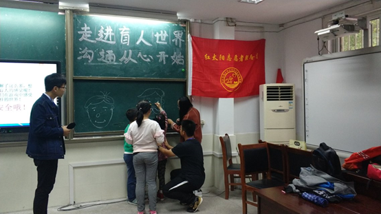 走近盲人世界,沟通从心开始。为了让更多的人去关心帮助盲人,10月18日下午我院16名红太阳志愿者在依泽小学开展“走进盲人世界,沟通从心开始”的主题活动。