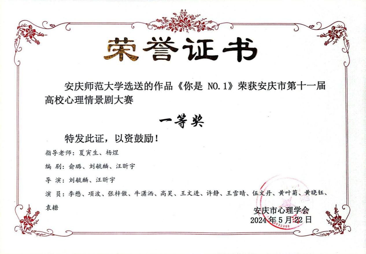 英国上市公司365话剧作品《你是No.1》荣获安庆市第十一届高校情景剧一等奖