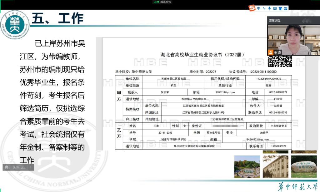 3月23日上午,我院在F203召开了专题教育报告会,本次报告会由2019届地理科学专业优秀毕业生王涛主讲。由于疫情的原因,本次报告会采用线上形式进行,参加的同学主要为2019级地理科学专业学生。