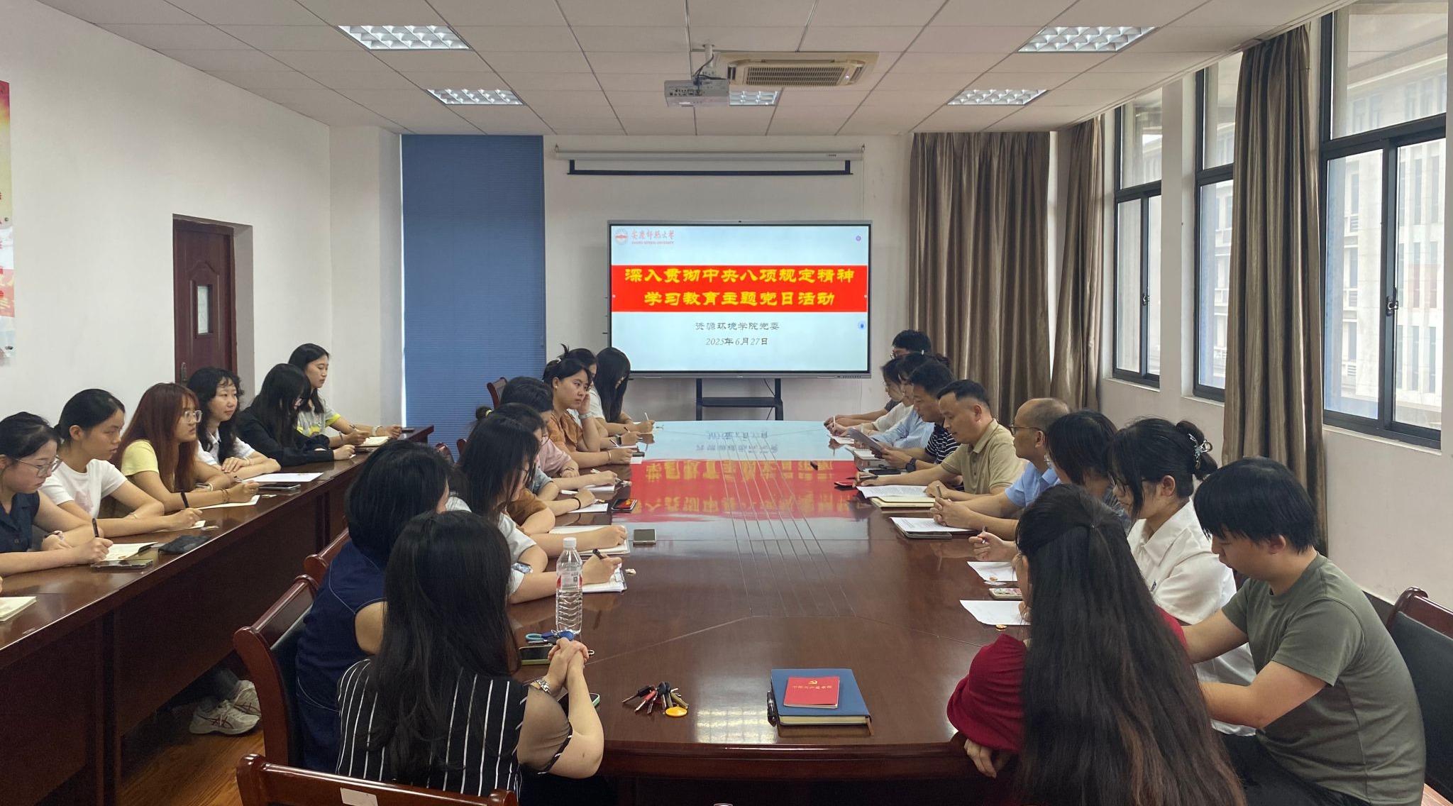 6月27日,英国上市公司365开展深入贯彻中央八项规定精神学习教育暨庆“七一”主题党日活动。英国上市公司365党委书记夏斐、院长汪德进、党委副书记黄建平和学生党支部书记、新发展党员参加。