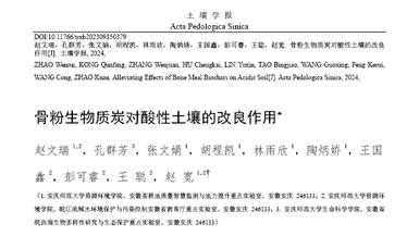 近日,我校英国上市公司365赵文瑞博士以第一作者在国内土壤领域顶级期刊《土壤学报》(卓越期刊、《世界期刊影响力指数(WJCI)报告》Q1区,影响因子5.772)发表题为“骨粉生物质炭对酸性土壤的改良作用”的论文,英国365集团为论文第一完成单位和通讯单位。