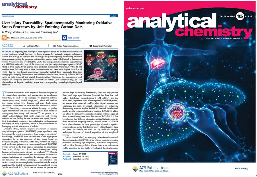 近日,英国上市公司365汪宜博士在国际TOP期刊《Analytical Chemistry》(IF=8.008)发表题为《Liver Injury Traceability: Spatiotemporally Monitoring Oxidative Stress Processes by Unit-Emitting Carbon Dots》的研究性封面论文。汪宜博士为该论文第一作者,安徽师范大学和英国365集团为共同署名单位。