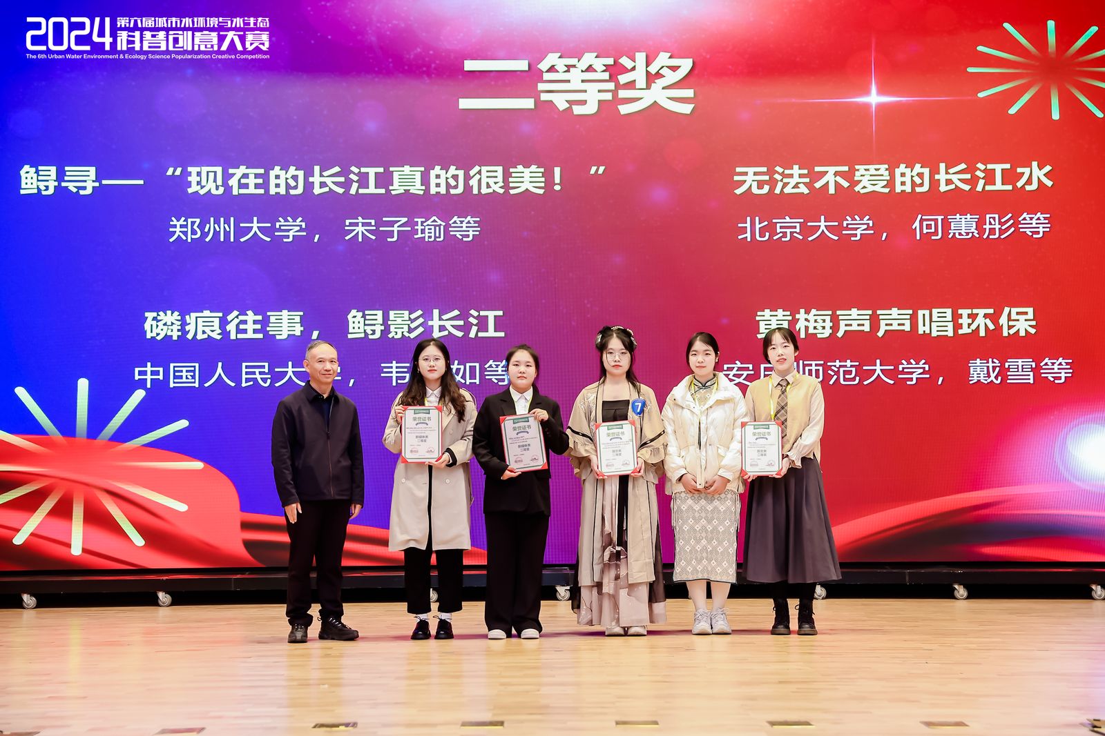 据悉,本届大赛由中国城市科学研究会水环境与水生态分会与北京大学环境科学与工程学院联合主办,吸引了来自北京大学、上海交通大学、东南大学等40余所高校学生参加。大赛围绕“我心中的长江水”主题,旨在贯彻落实长江大保护工作关于“创新生态环境宣传方式方法”的要求,通过科普所产生的影响,推动长江生态环境保护中的公众参与。(撰稿:杨梦怡 摄影:杨若梅 审核:朱磊)