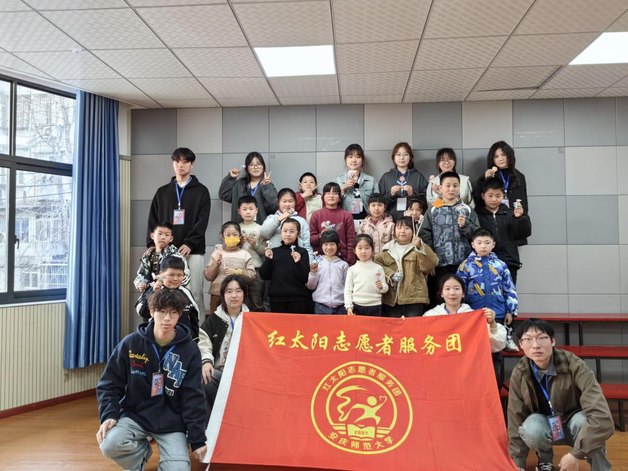 为加深小朋友们对鲜花的感知,红太阳志愿者服务团组织小朋友们用扭扭棒制作花卉。分发材料时,小朋友们蓄势待发,坐在座位上目不转睛地盯着地理科学专业(2)班的李梦欣手中的扭扭棒。志愿者在讲台上示范,同学们全神贯注,紧跟每一步。扭扭棒在小朋友们手中飘然起舞,花朵、花蕊、花叶一一展现。在志愿者的帮助下,每一位同学都做出独一无二的花朵。各式各样的鲜花先后“出炉”,孩子们的脸上浮现出纯真的笑容。小朋友们创作出的不仅仅是花朵,更是他们对春的独特情感。最后,同学们手持自己做的花,与志愿者合影留念。