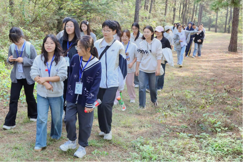 活动特别选址校园后山与文曲亭,将课堂教学延伸至自然天地,开创传统文化育人新模式。“我们想让重阳这一传统节日‘活’起来,避免它仅停留在‘敬老’的概念认知上。”活动负责人、地理科学2024(2)班的付松表示,希望通过“后山登高”这一沉浸式体验,将节日习俗与校园自然场景结合,既符合“登高祈福”的传统,又能让学生们在户外互动中切身感受节日氛围。