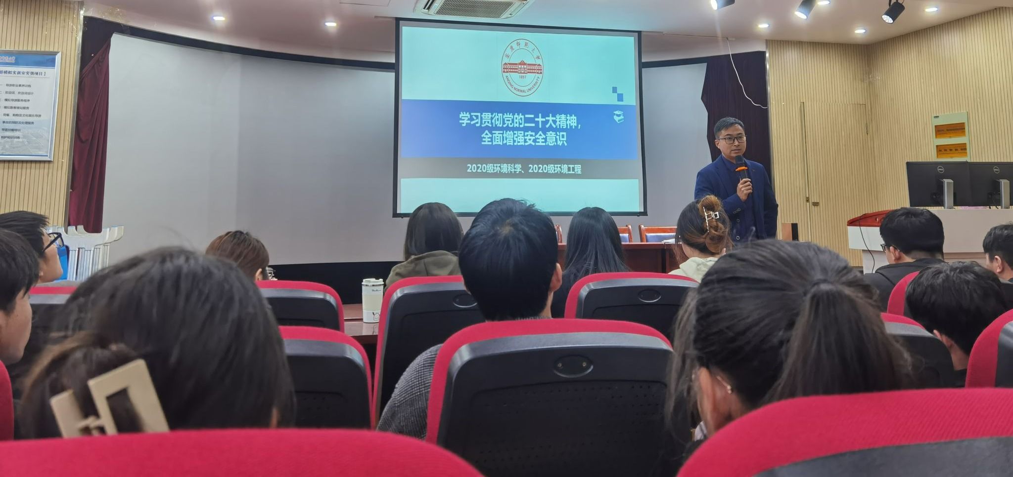 安全无小事,抓好安全工作是维护学校正常秩序,提高育人成效的基础。4月23日下午,2020级环境科学、环境工程班级于F411召开安全教育主题班会,辅导员金力航主持会议,全体学生参加会议。