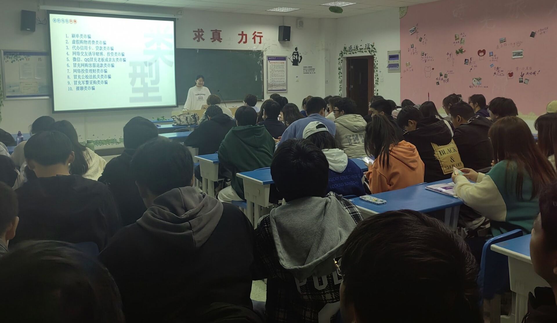 江洋洋同学详细的讲述了电信诈骗的危害特点,其作案手法,充分利用的PPT对常见的网络兼职刷单诈骗、网络贷款诈骗、冒充购物客服退款诈骗、冒充熟人亲友诈骗的诈骗方式做了详细的描述,并结合真实案例,以案说骗。在会议上,同学们提出社会上的诈骗事件层出不穷,有很多专门针对在校大学生的诈骗行为,不断有大学生上当受骗,我们必须提高警惕,保障自身人身安全,我校也发生过多次大学生受骗行为。尽管学校一再提醒但是仍然有人被骗,这不仅仅是因为诈骗形式越来越多样化,很重要的一点,是我们没有足够的警惕性没有识别破坏人的阴谋,从而落网。因此学校也对防诈骗这一块看得很重,希望每个大学生都能具备一定的防范意识,减少诈骗行为的发生营造良好的校园环境。